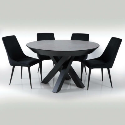 השולחן עגול בעל רגל מרכזית בעיצוב מרשים, ייחודי וחסכוני במקום, חזקה ויציבה מאוד.